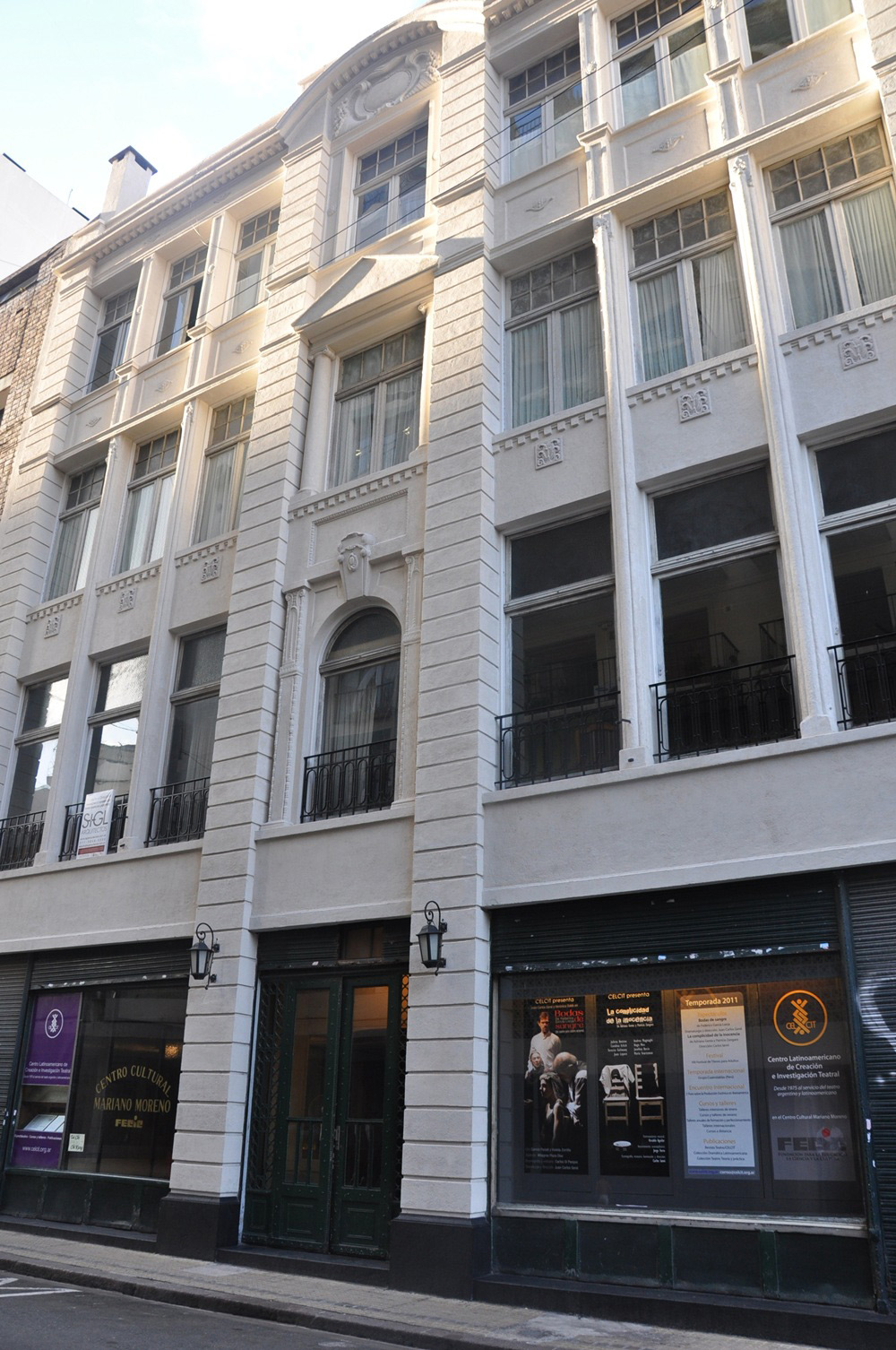 En un nivel intermedio, balconeando sobre la sala de espectáculos, encontramos oficinas, la cabina de luces y sonido, el depósito de escenografía, utilería y vestuario.